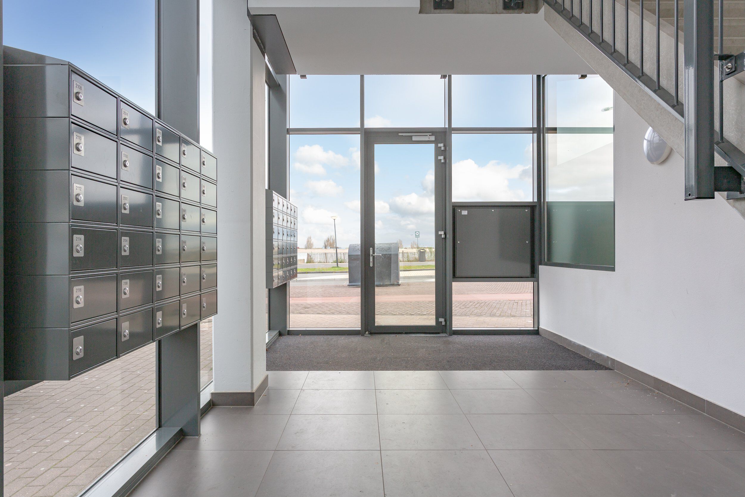 De woning indeling Middels de entree, komt u in de gang met links een inpandige berging, een toiletruimte en de woonkamer met open keuken en deur naar het balkon. De witte keuken is in hoekopstelling inclusief zwart composiet blad en Siemens inbouw apparatuur: keramische kookplaat, afzuigkap, vaatwasser, combimagnetron en koel/vriescombinatie. De woning heeft 1 slaapkamer en 1 hobbykamer, badkamer met wastafel en douche. Separaat toilet en een inpandige berging is aanwezig met aansluiting voor wasmachine en droger. Het balkon is tevens te bereiken via de woonkamer ligt gelegen op het noordoosten. Op het binnenterrein liggen de bergingen en naast de centrale toegangsdeur bevindt zich de algemene fietsenberging welke alleen toegankelijk is voor bewoners.