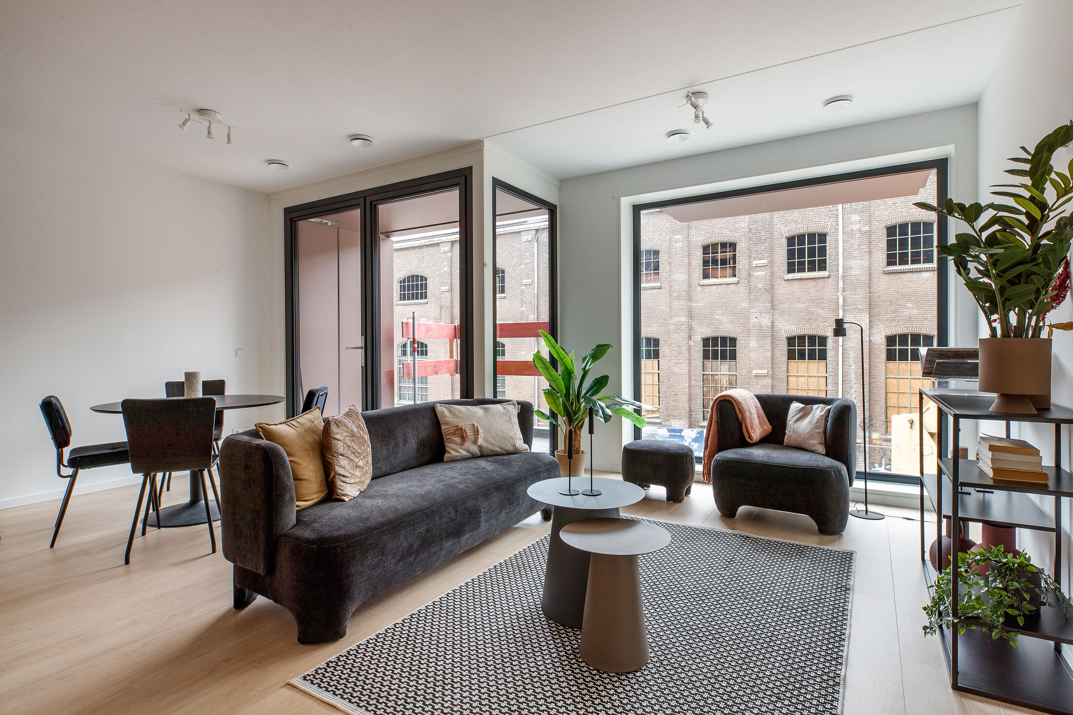 Woonkamer met open keuken en openslaande deuren naar balkon of terras • Luxe keuken in parallelopstelling met spoeleiland, voorzien van zwart composiet aanrechtblad en inbouwapparatuur: koelkast met vriesvak, combimagnetron, inductiekookplaat, wandschouwkap en vaatwasser • Eén slaapkamer • Badkamer voorzien van douche met glazen douchedeur en wastafel • Apart toilet • Ruime berging voorzien van opstelplaats voor wasmachine, droger, WPU en WTW
