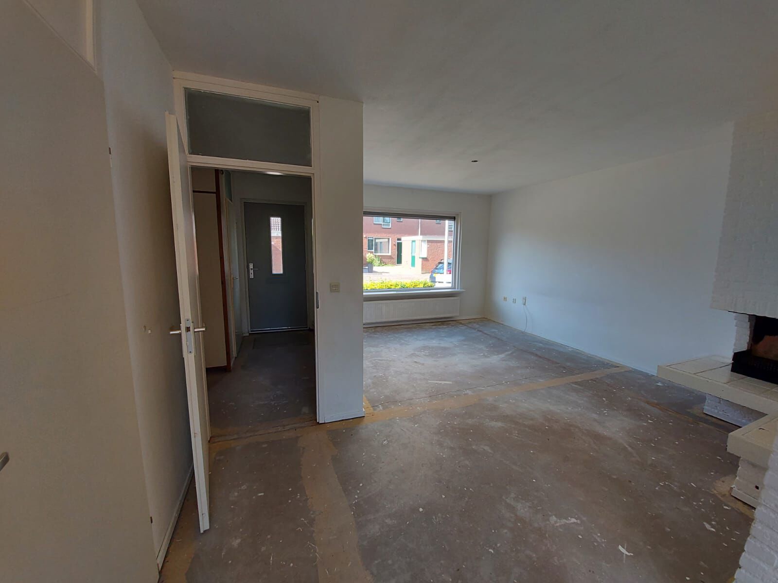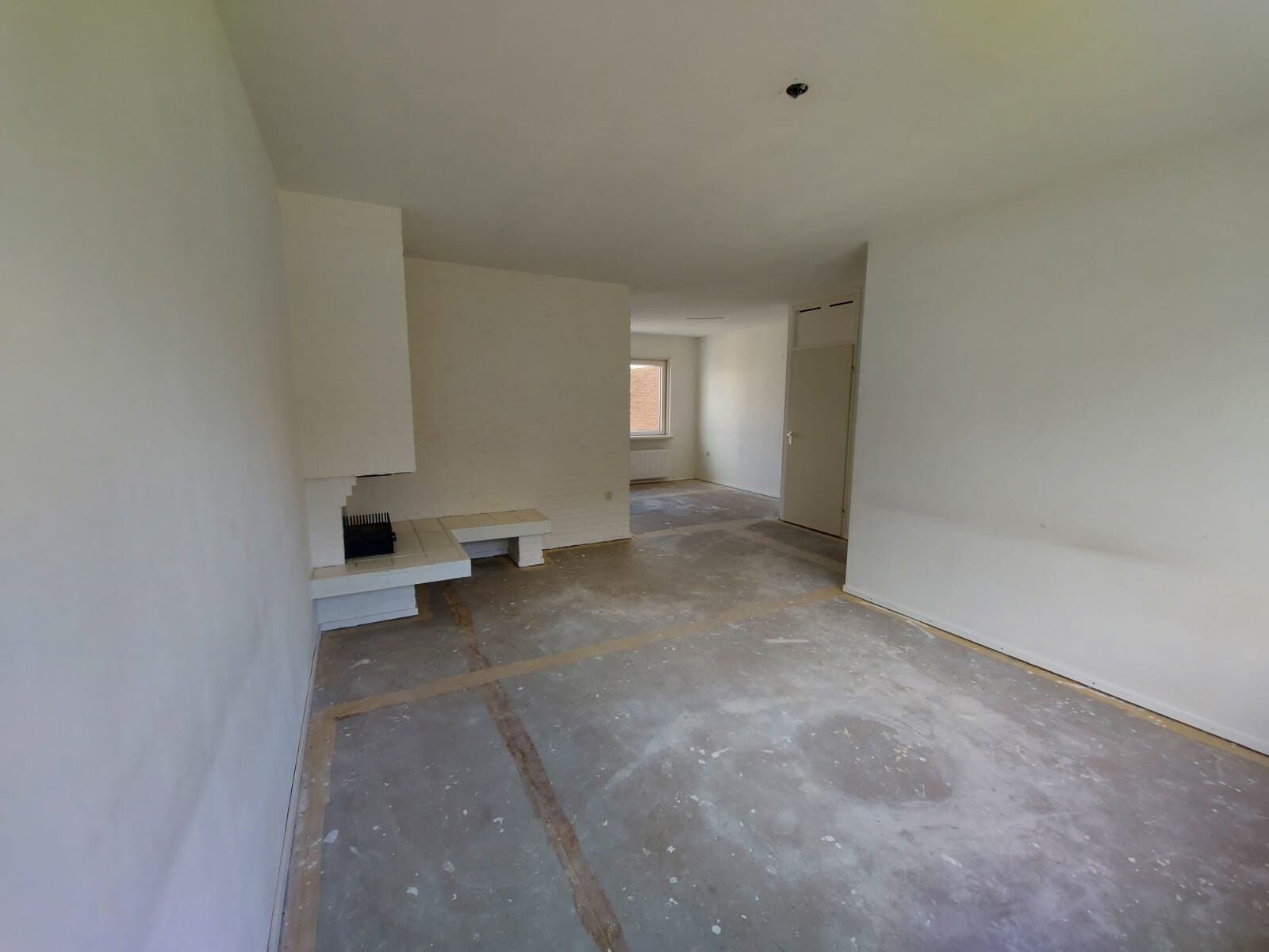 Je hebt in deze woning een ruime z-vormige woonkamer met open haard. De woonkamer loopt over de hele diepte van het huis met aan de voorkant riante ramen. Deze heb je ook aan de achterzijde, alleen zitten de ramen hier verwerkt in de schuifpui! Ook is er een gedeeltelijk open keuken, waaraan de bijkeuken direct grenst.