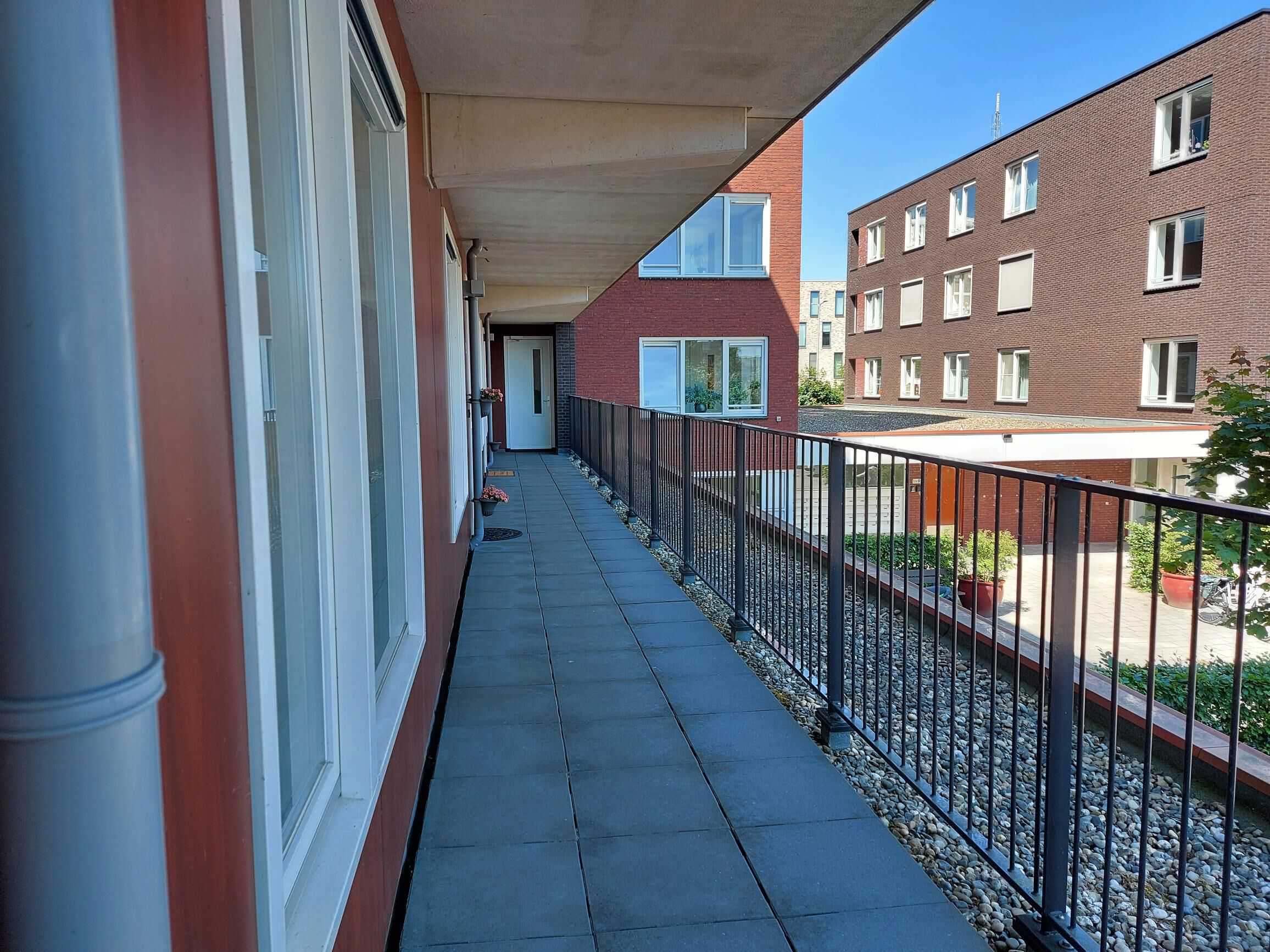 De entree geeft toegang tot alle vertrekken. Bij binnenkomst bevinden zich tegen over elkaar de twee slaapkamers. Er is ook een ruime berging aanwezig, waar de wasmachine- en drogeraansluiting zich bevinden. De badkamer is voorzien van een ligbad, inloopdouche en dubbele wastafel met spiegel. Het appartement beschikt over een zeer ruime woonkamer met een halfopen keuken. De keuken is voorzien van inbouwapparatuur zoals een combimagnetron, vaatwasser, koel-vriescombinatie, inductiekookplaat en afzuigkap. Aan de woonkamer grenst het balkon van 9 m2, welke is gelegen op het zuiden. Er is ook een separaat toilet aanwezig. Op de begane grond bevinden zich de externe berging en een eigen parkeerplaats.