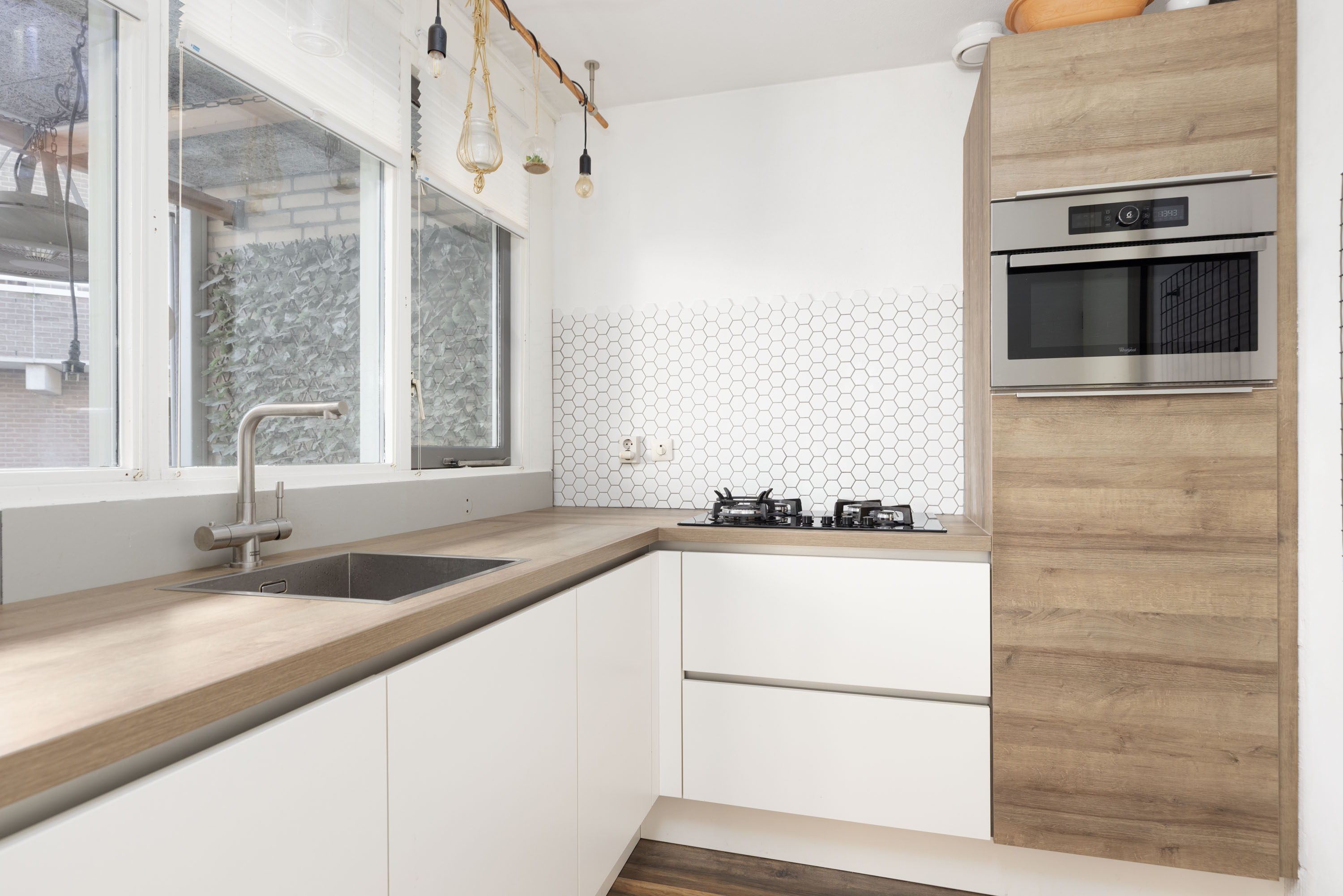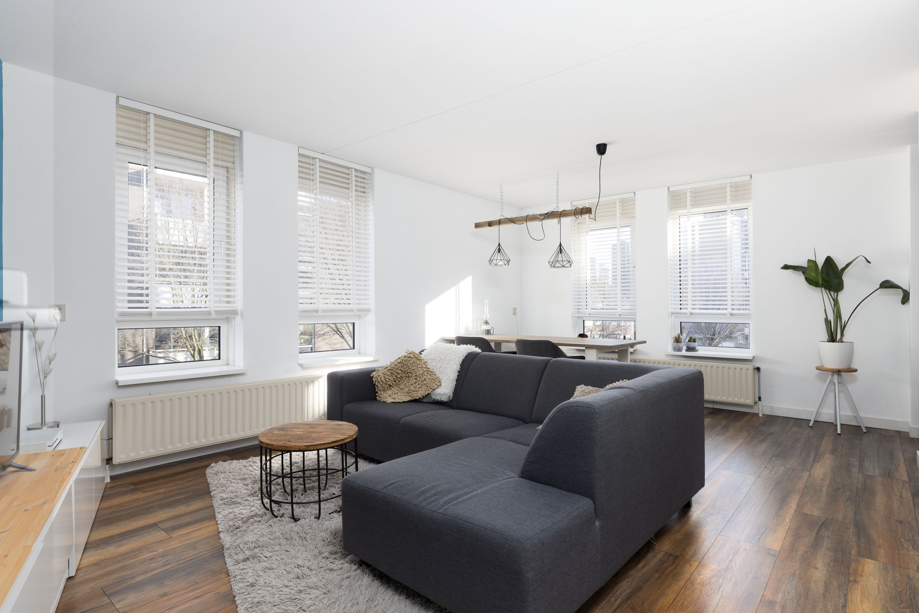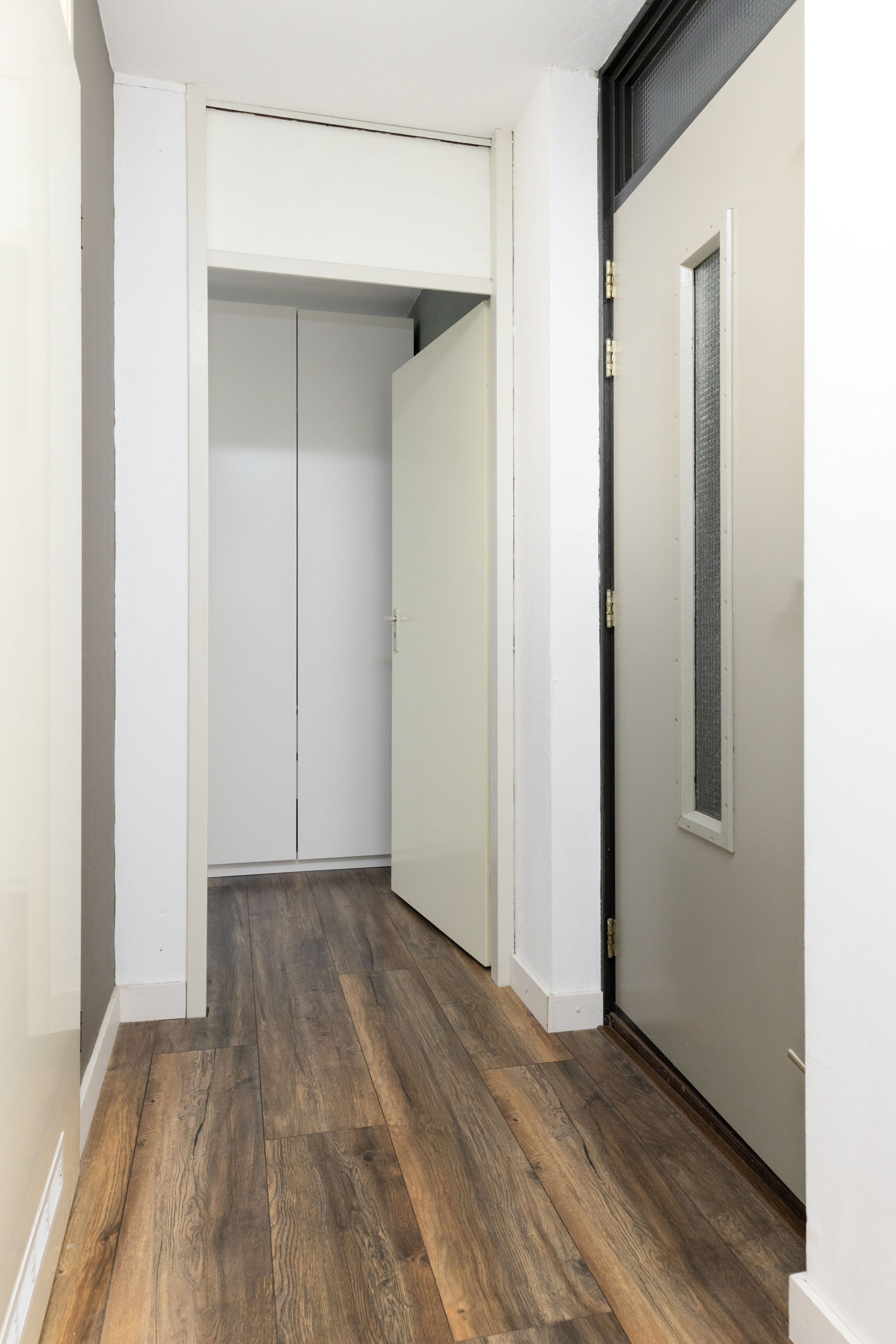 Via de entree kom je in de hal die toegang biedt tot de verschillende vertrekken. De lichte woonkamer vormt het hart van het appartement en biedt voldoende ruimte voor een comfortabele zithoek en eethoek. Dankzij de prettige lichtinval voelt de ruimte open en aangenaam aan.