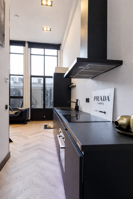 Achter de historische gevel schuilt een verrassend ruime woning met een luxe loftachtige indeling. De begane grond biedt een lichte leefruimte met grote ramen die zorgen voor veel daglicht. De moderne zwarte keuken (Nolte) vormt het kloppend hart van het huis een plek waar koken en samenzijn vanzelf samengaan. De keuken is voorzien van Etna en Siemens apparatuur en heeft onderandere een keramische kookplaat. Ook de begane grond is voorzien van vloerverwarming.