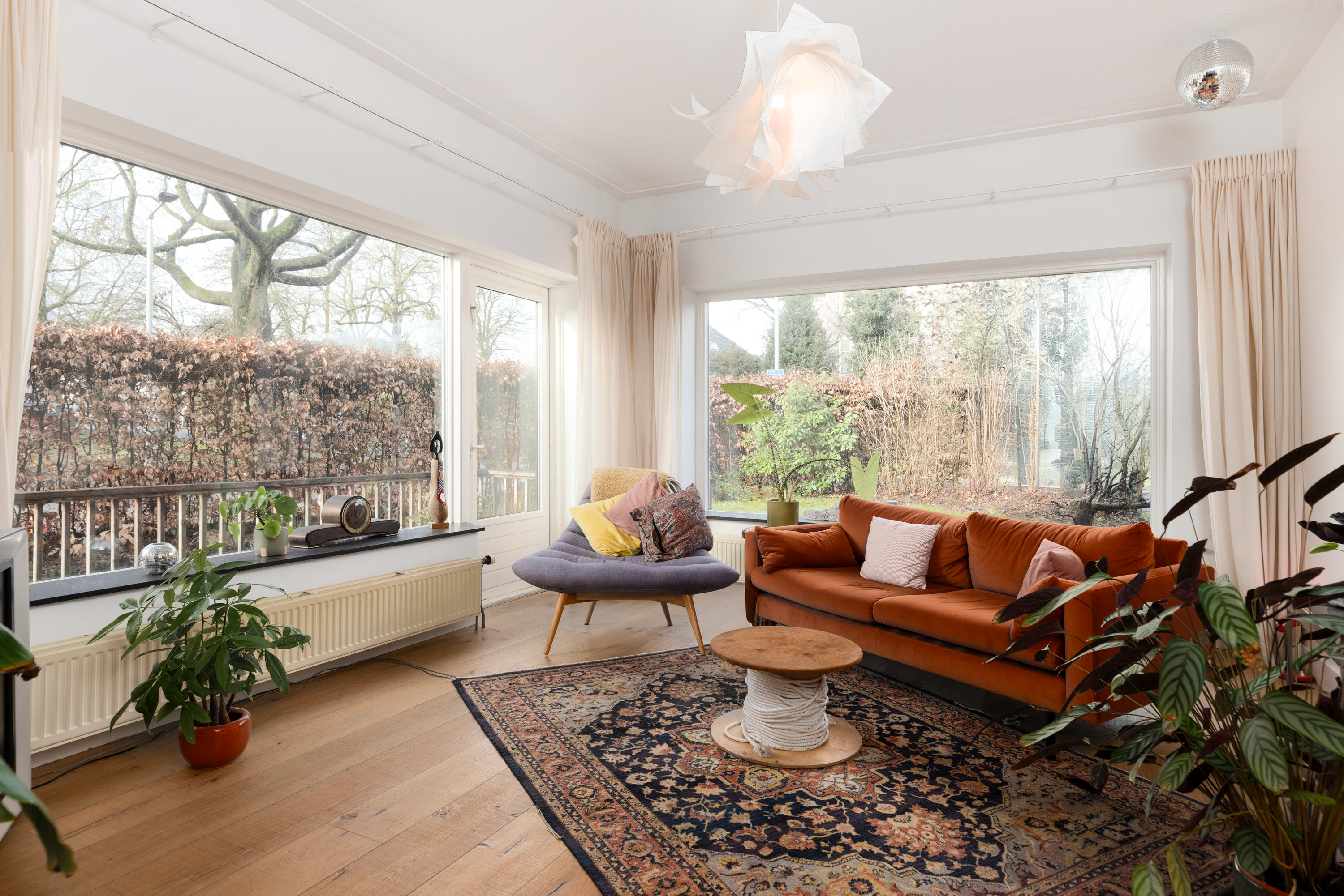 Licht & leefruimte – voor- zij- en achtertuin, woonkamer op het zuiden met openslaande deuren naar de achterplaats