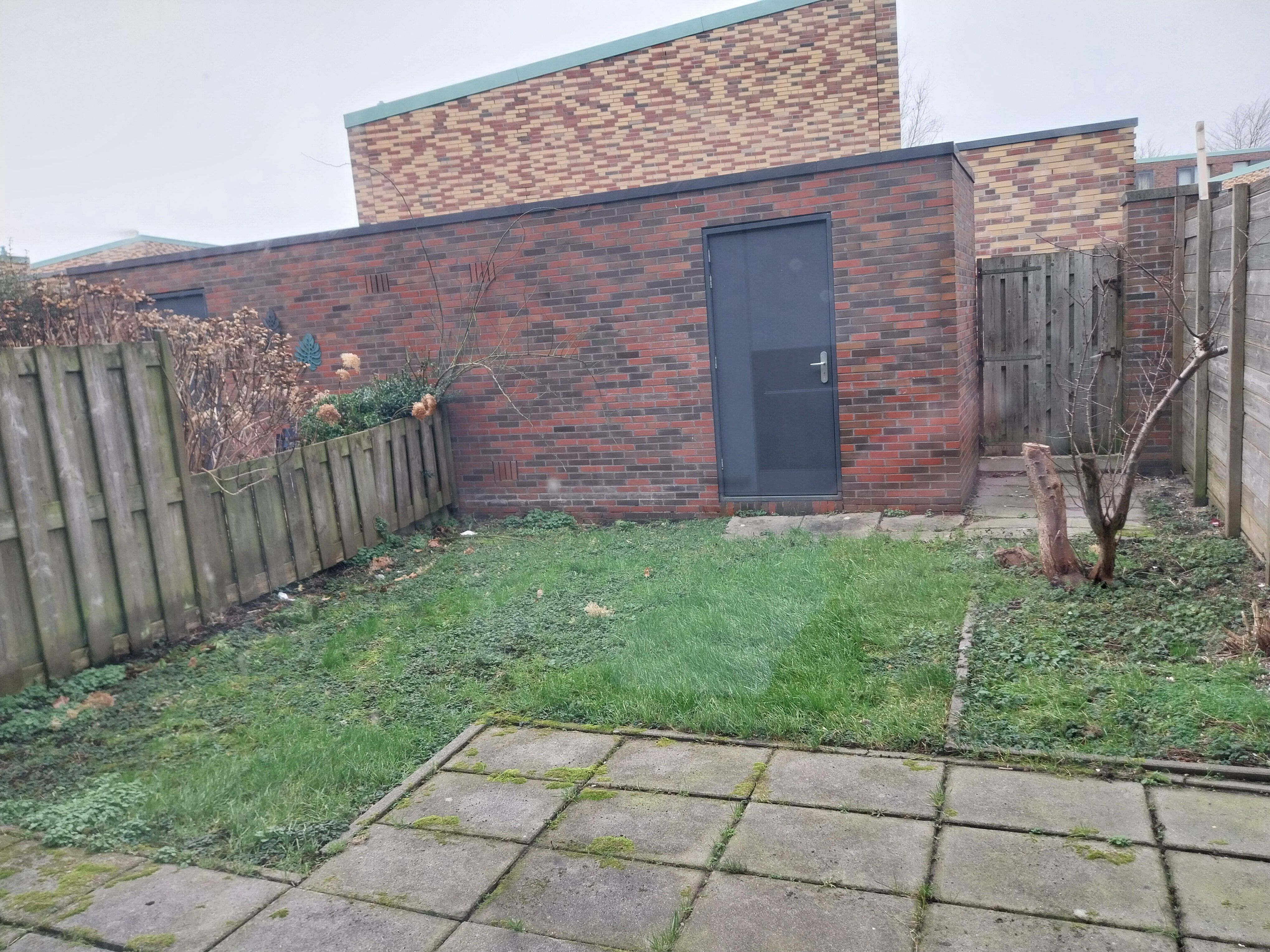 De diepe tuin is via de woonkeuken te betreden. In de tuin staat een berging/schuur, ideaal om fietsen neer te zetten, want de tuin heeft een achterom.