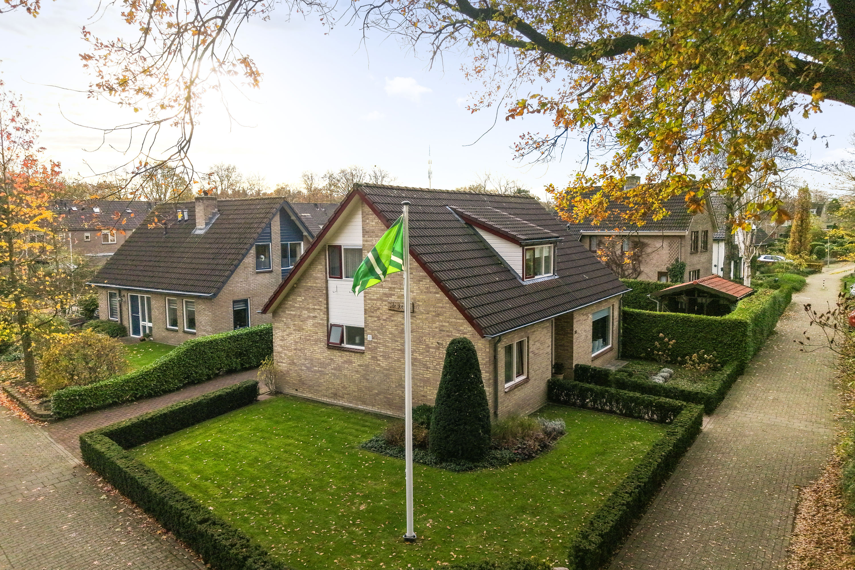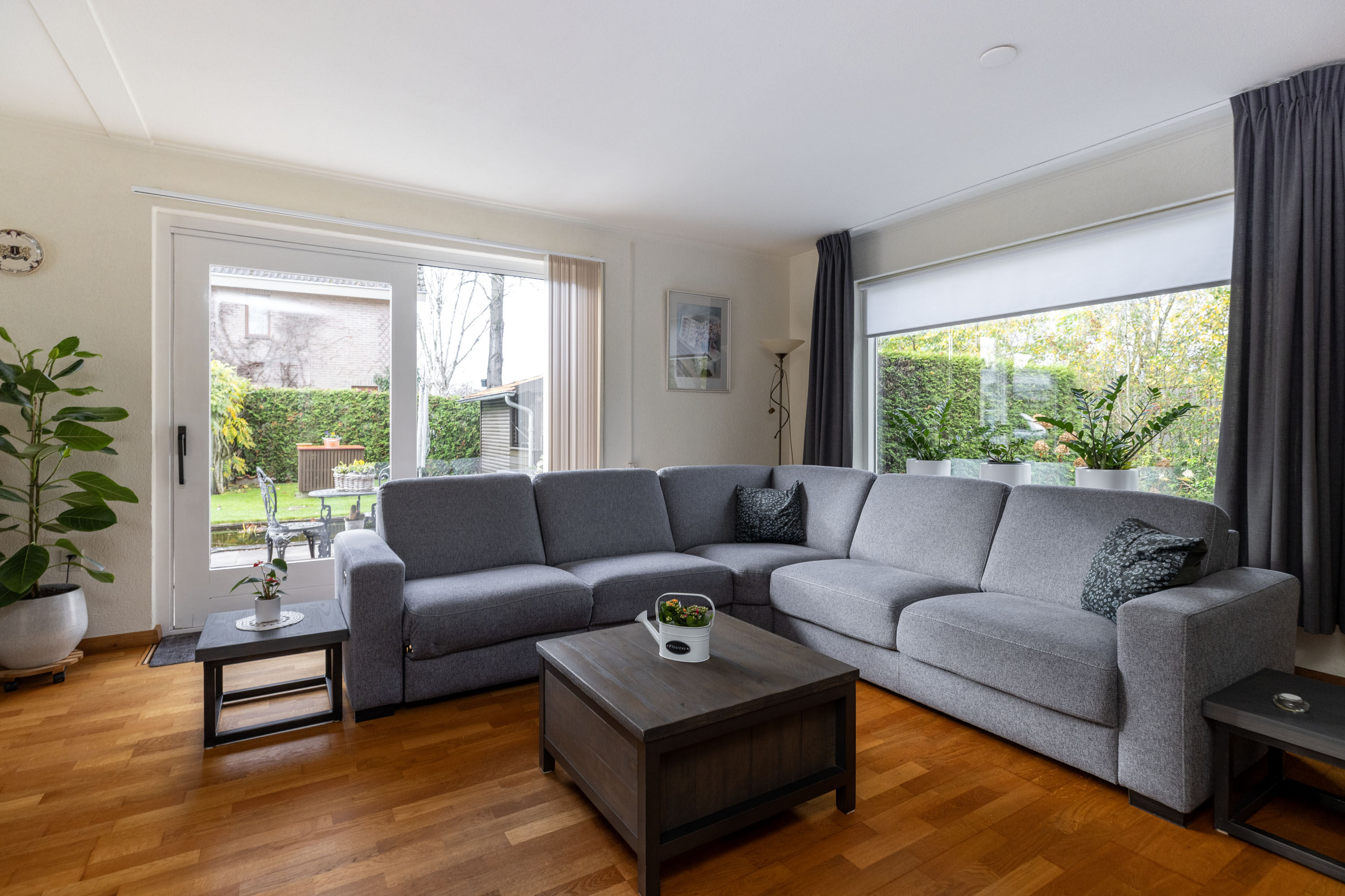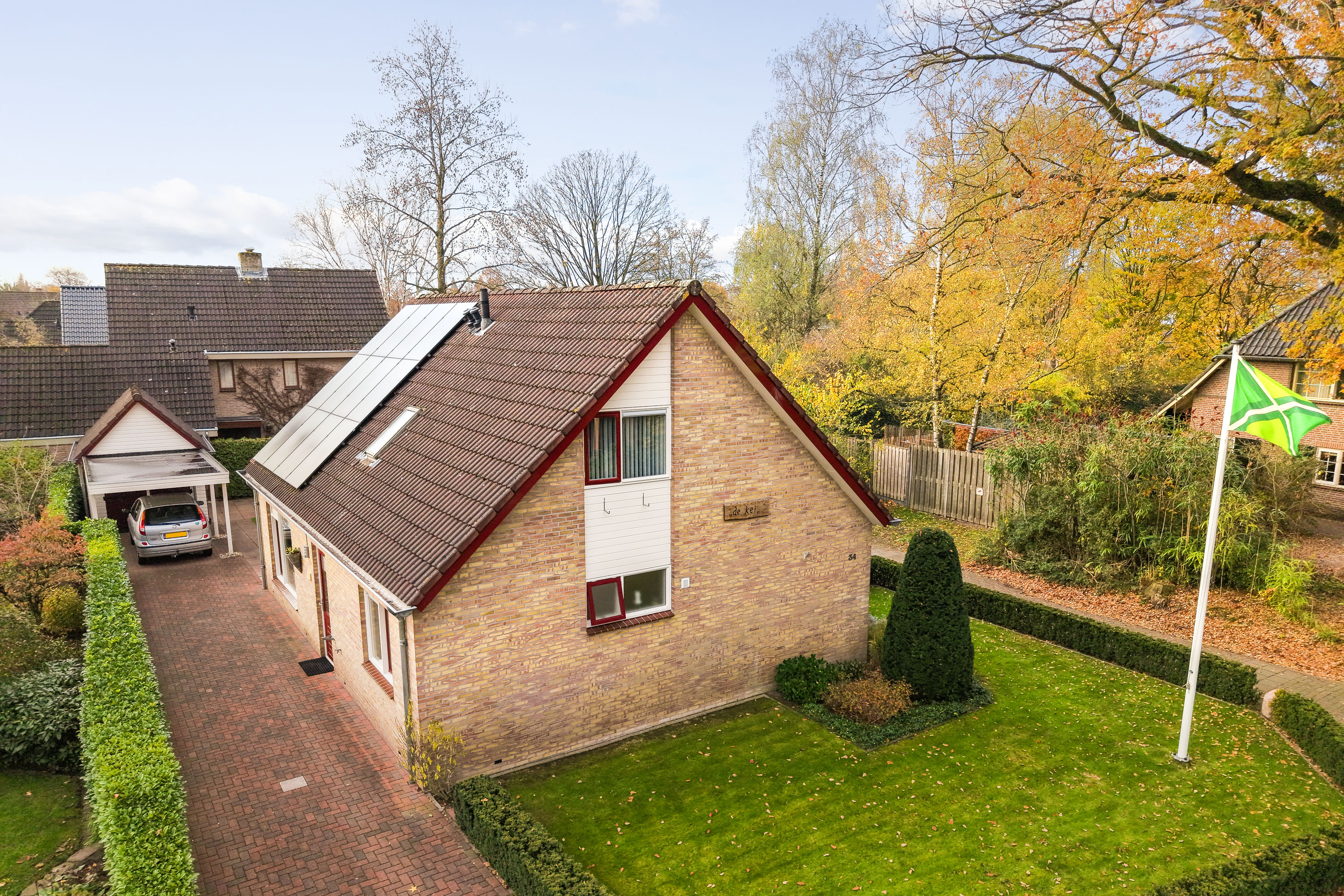 De woning beschikt over een carport, een houten berging en een houten tuinhuis, perfect voor het opbergen van fietsen, tuinspullen of gereedschap. De tuin rondom de woning geeft een gevoel van vrijheid en privacy, met volop mogelijkheden voor zon, schaduw en gezellige loungeplekken.