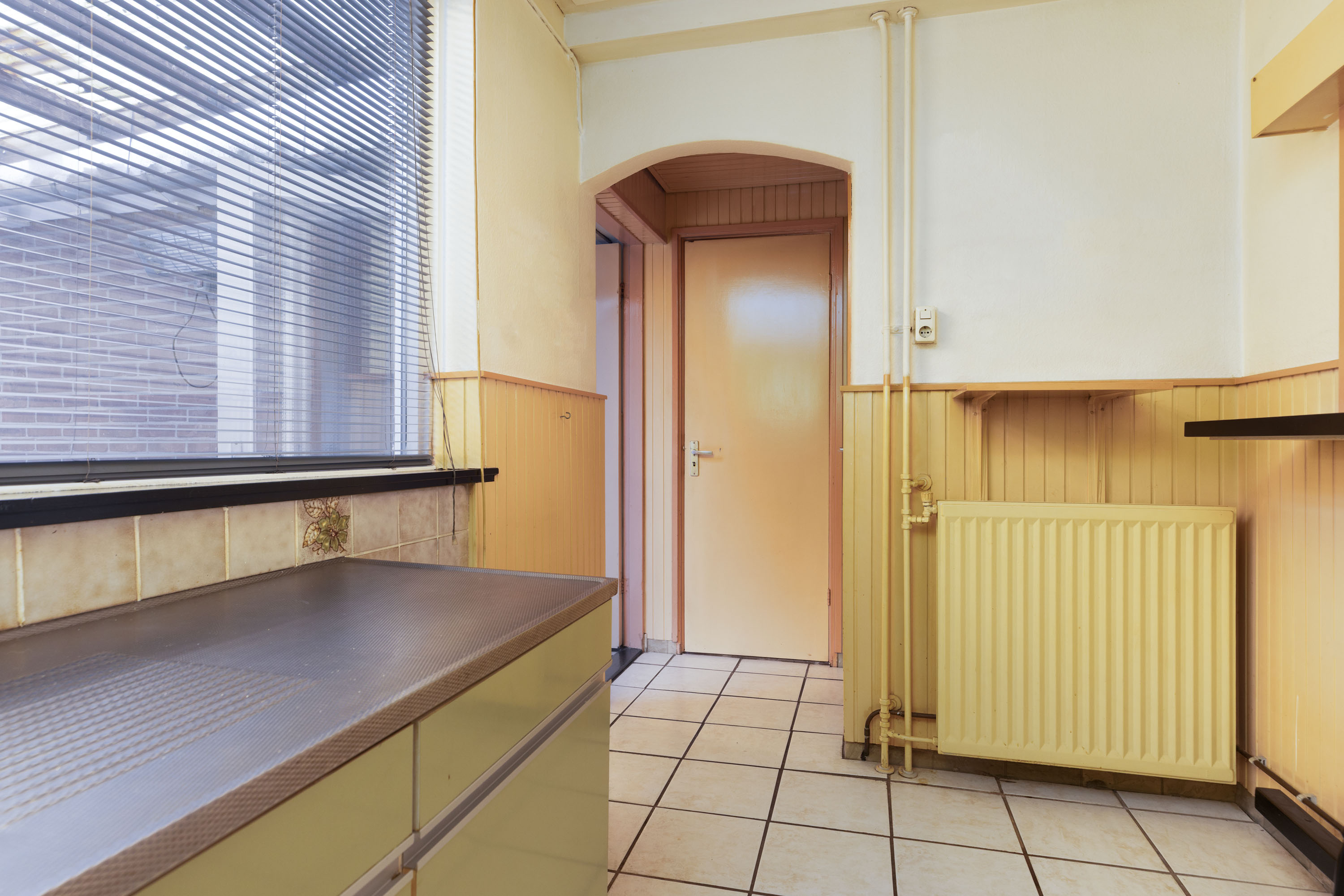- Eenvoudige keuken, klaar voor modernisering;