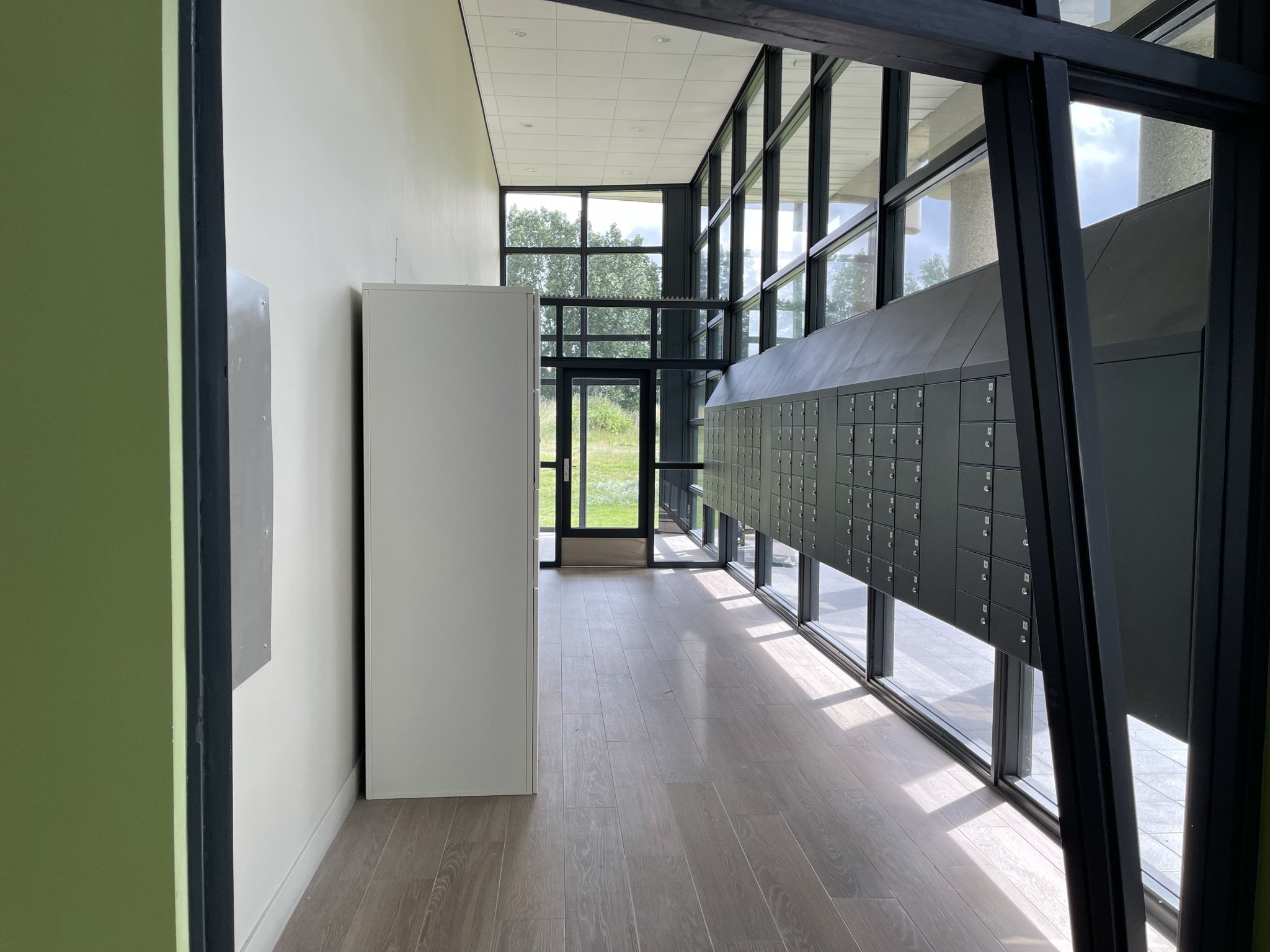 Je komt binnen in de hal waar meteen rechts van je de badkamer bevindt met een douche. Het toilet bevindt zich in een aparte ruimte. Tegenover de ingang heb je twee slaapkamers. Als je de hal uitloopt heb je links van je een berging en loop je de woonkamer in met een halfopen keuken.