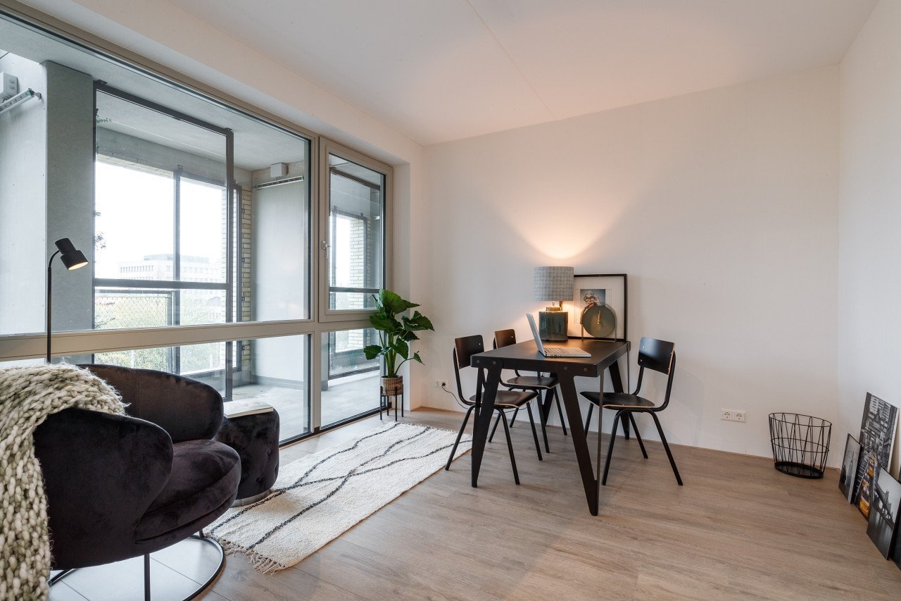 Het appartement heeft een moderne open keuken met aanrechtblad en voorzien van luxe inbouwapparatuur. Het appartement bevindt zicht op de 10e verdieping en heeft 2 slaapkamers met een ruime badkamer met wastafel en douche. Via de voordeur komt u binnen in de entree, welke toegang geeft tot de slaapkamer , woonkamer en keuken en een separaat toilet.