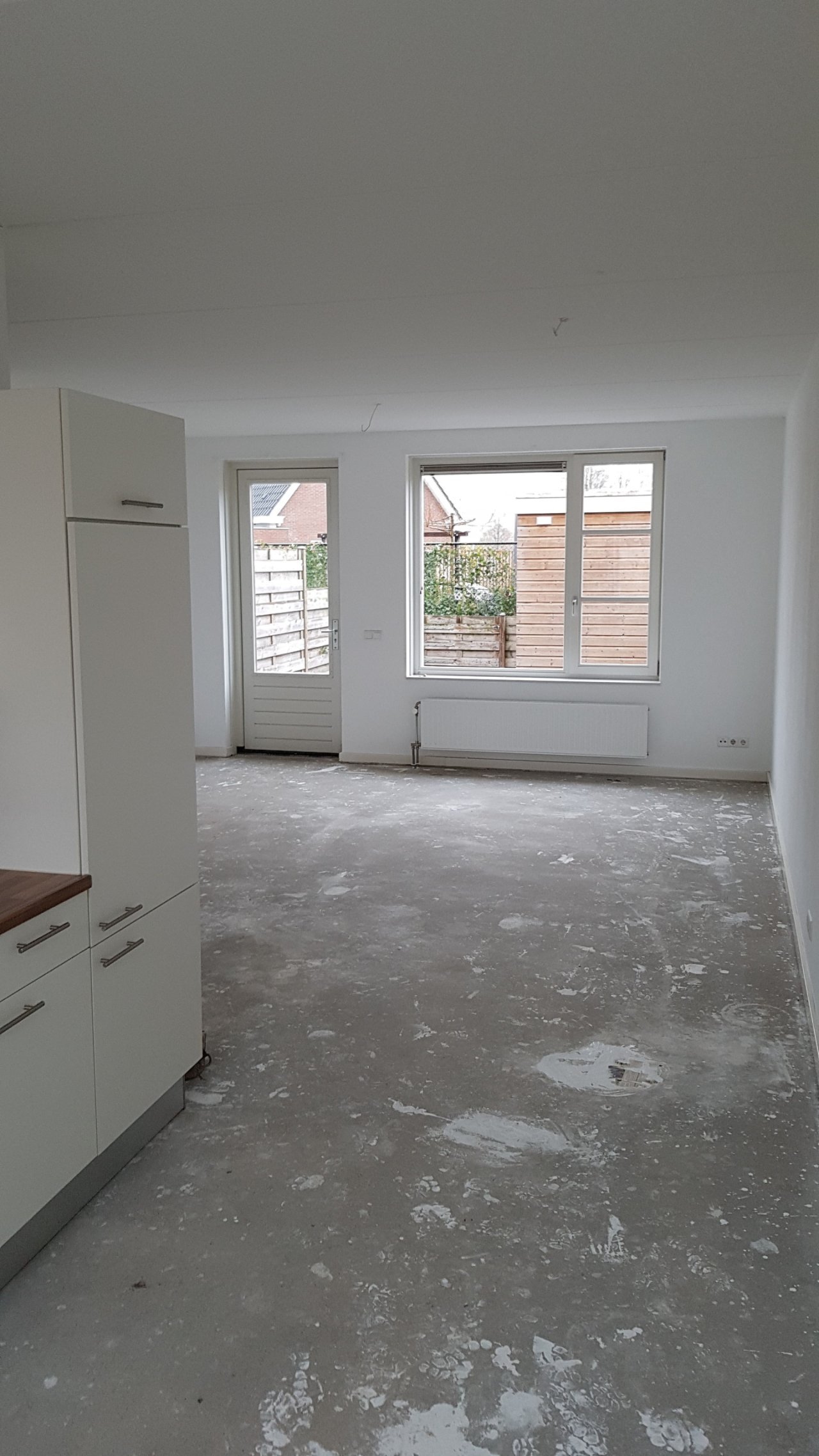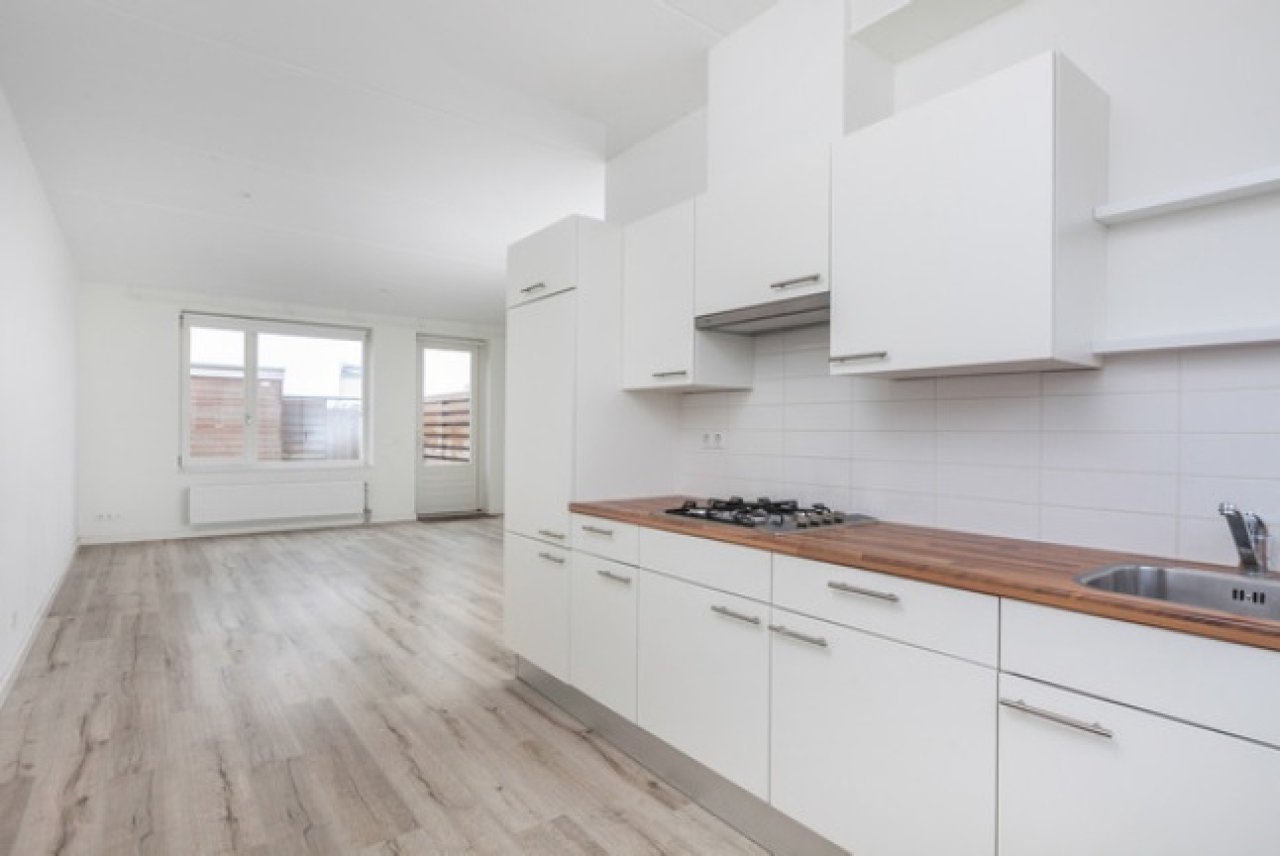 U komt binnen in de hal waarbij u direct aan uw linkerzijde het toilet vindt. Vanuit de hal komt u in de woonkamer voorzien van een open keuken met Siemens inbouwapparatuur. De woonkamer geeft toegang tot de op het noordwesten gelegen tuin. In de tuin bevindt zich een houten berging.