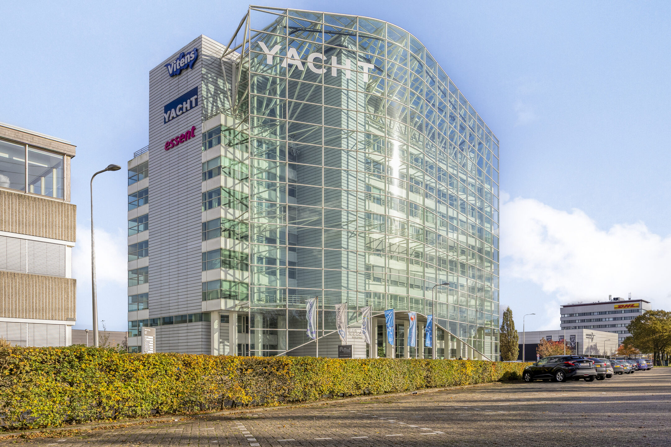 Het gebouw beschikt over diverse gemeenschappelijke faciliteiten waaronder een bemande receptiebalie in de centrale entree, een grab-and-go koffiebar, vergaderzalen, een auditorium en een dakterras. Flow Building huisvest bedrijven als THIS en Randstad en is uitstekend bereikbaar.